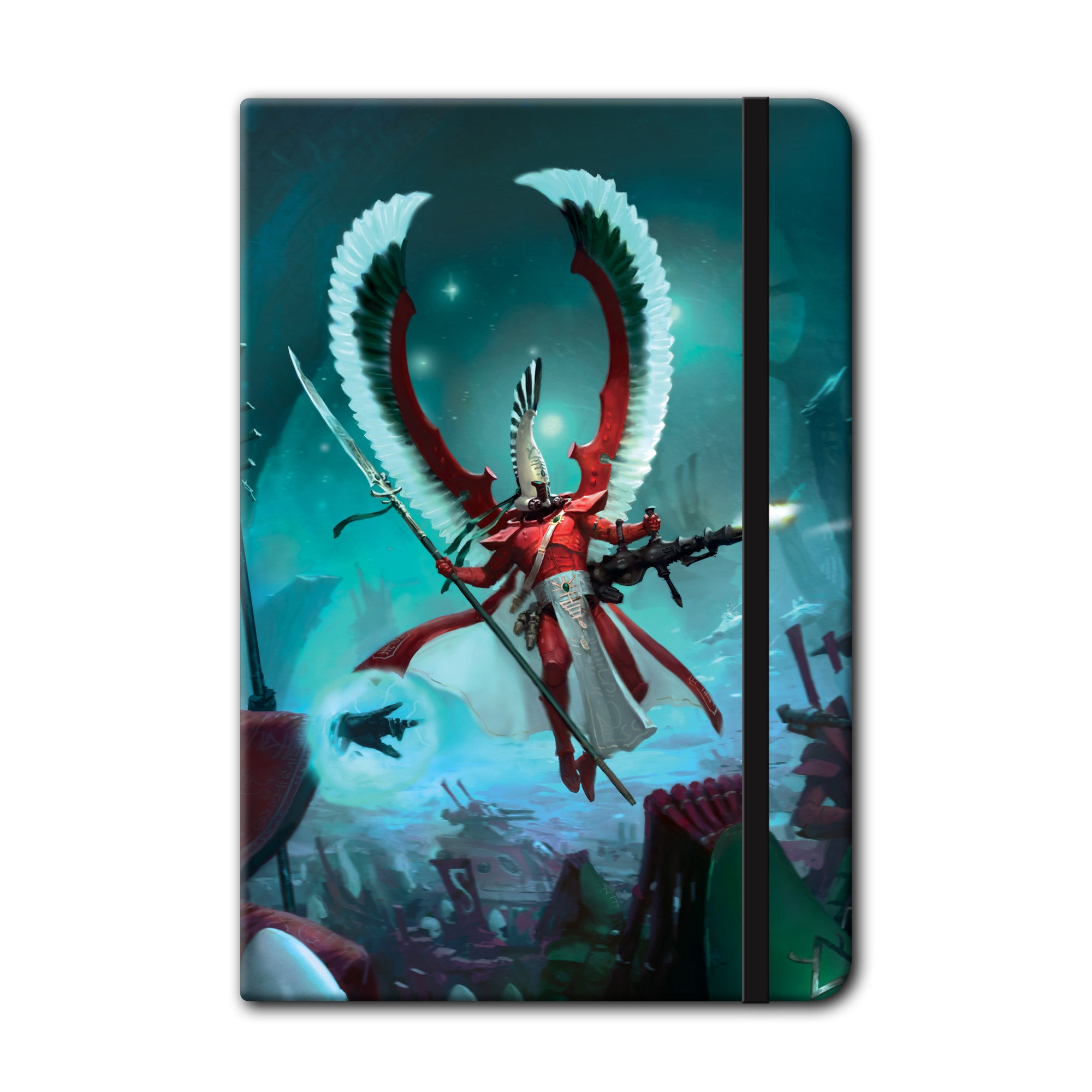 Regular price $20.00 USDSale price $20.00 USD Regular priceUnit price / perOfficial Aeldari Codex Notebook.Soft finish 80 page lined A5 notepad with book mark.Pocket at back for securing business cards and loose notes.Pen loop and an elastic...