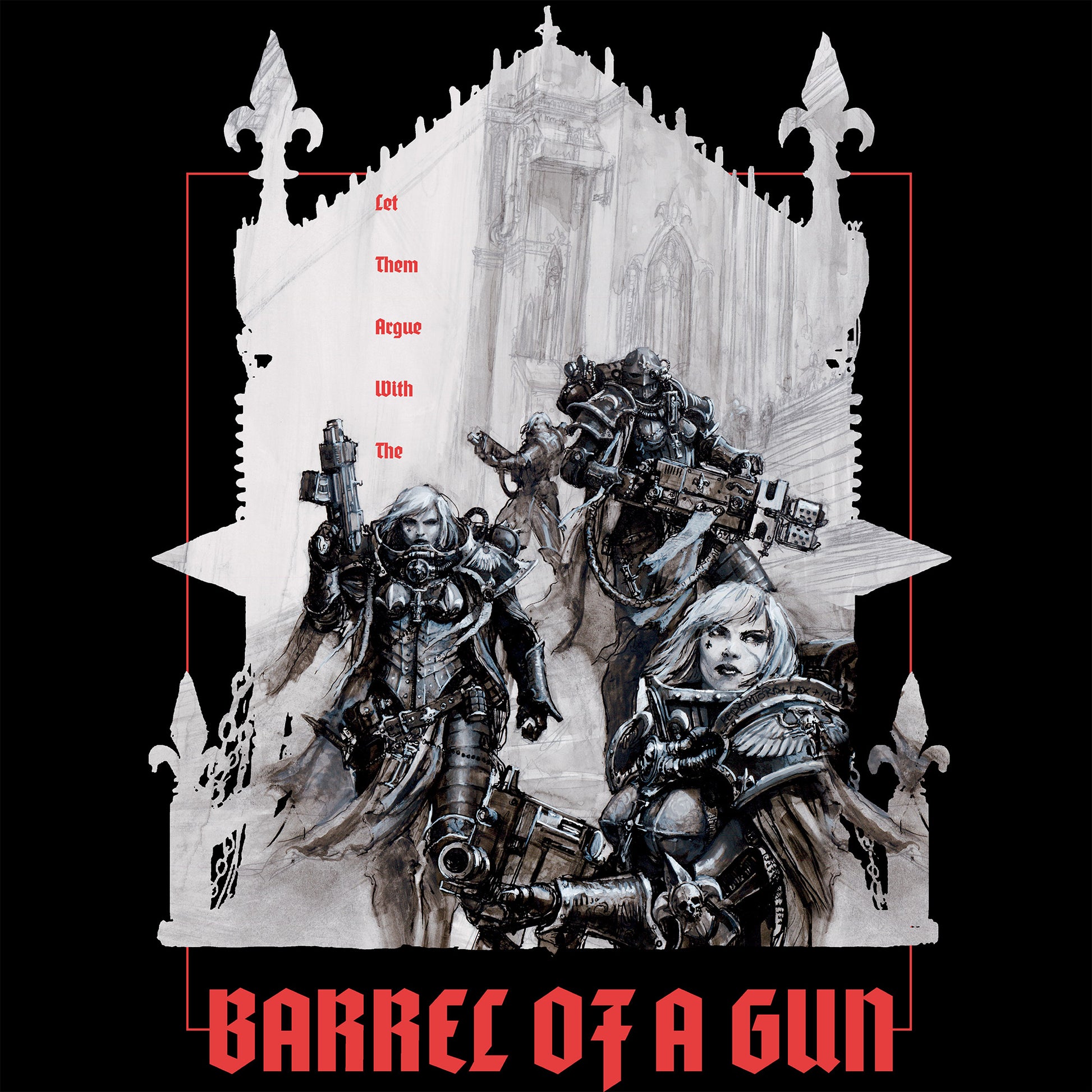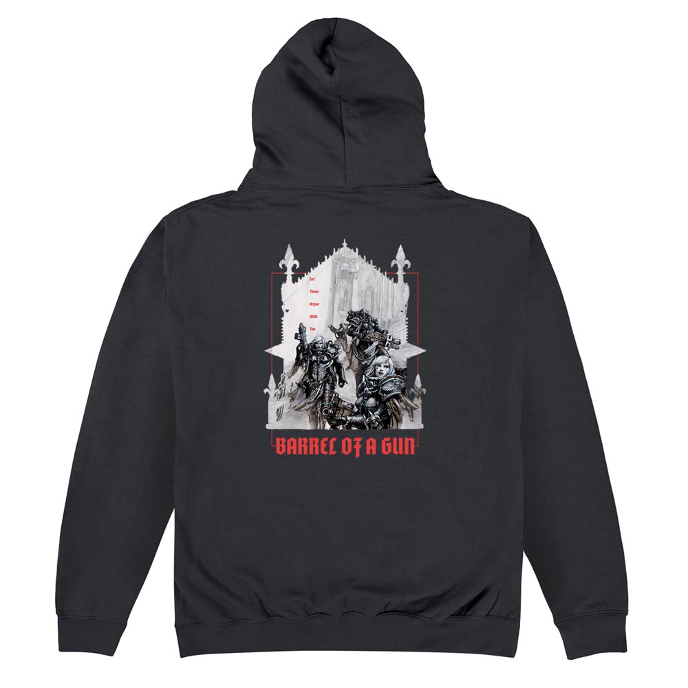 Official Adepta Sororitas Barrel of a Gun Hoodie available in sizes Small to 5XL on Black.