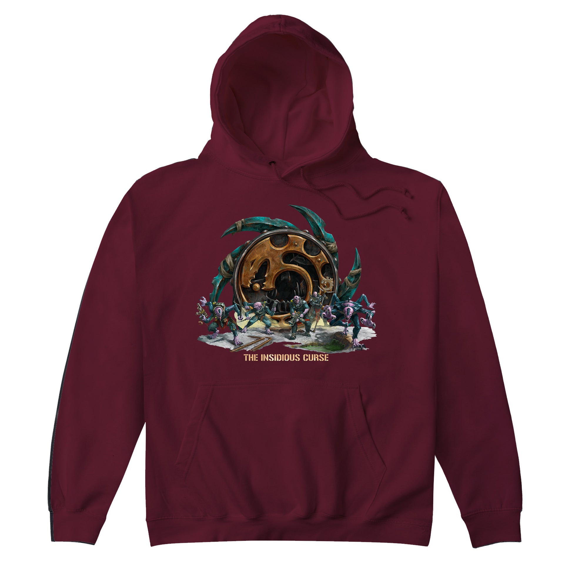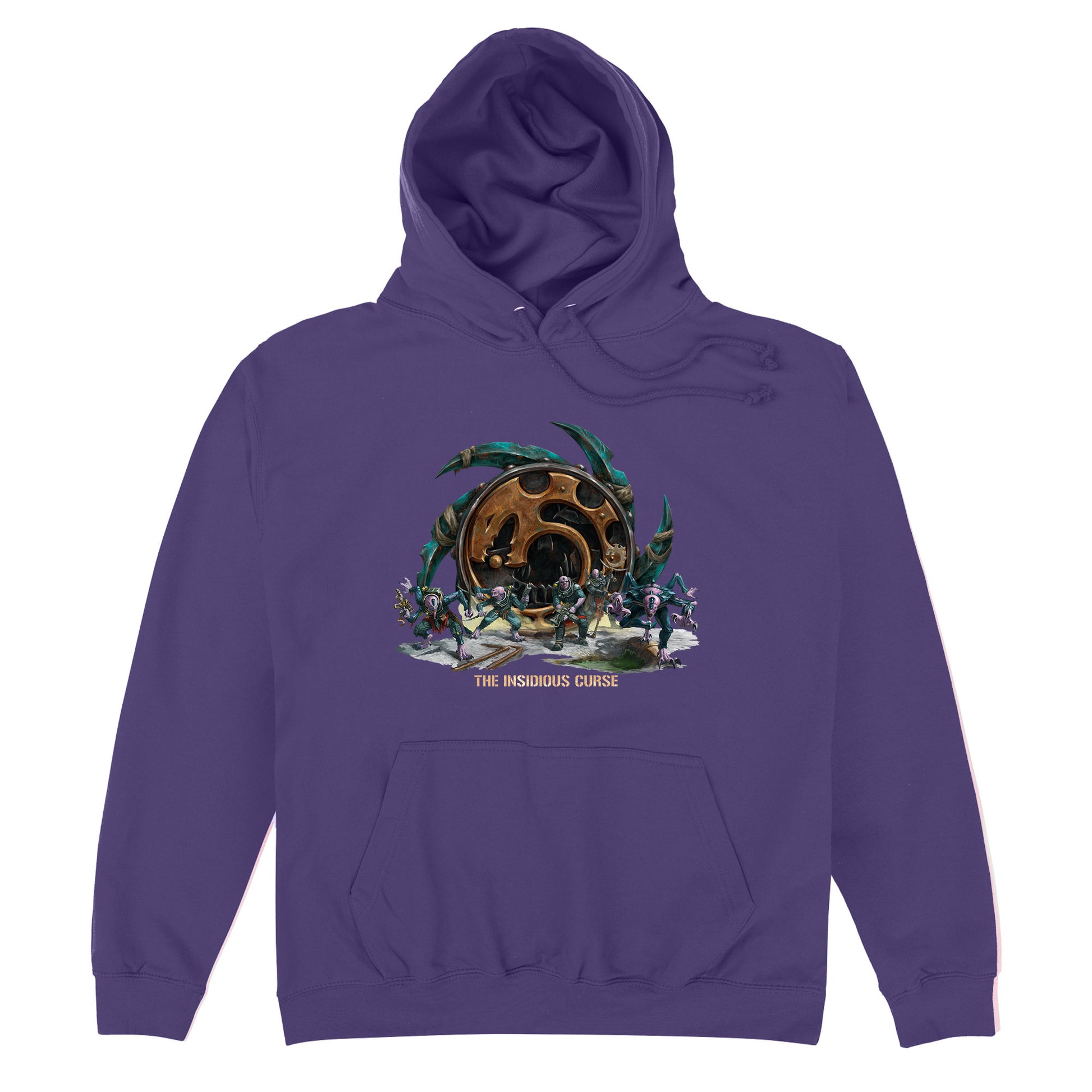 Official Genestealer Cults Insidious Curse hoodie, available on black, navy, burgundy and purple in sizes Small - 5XL.