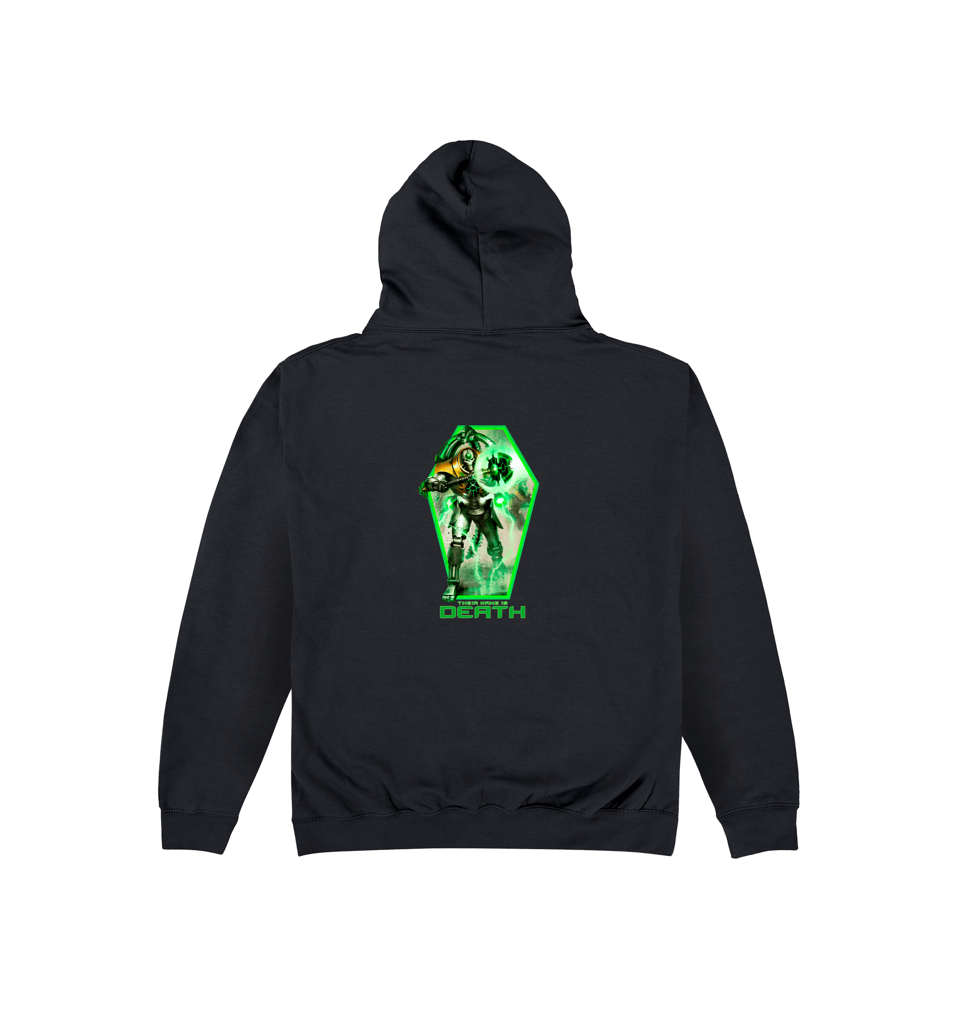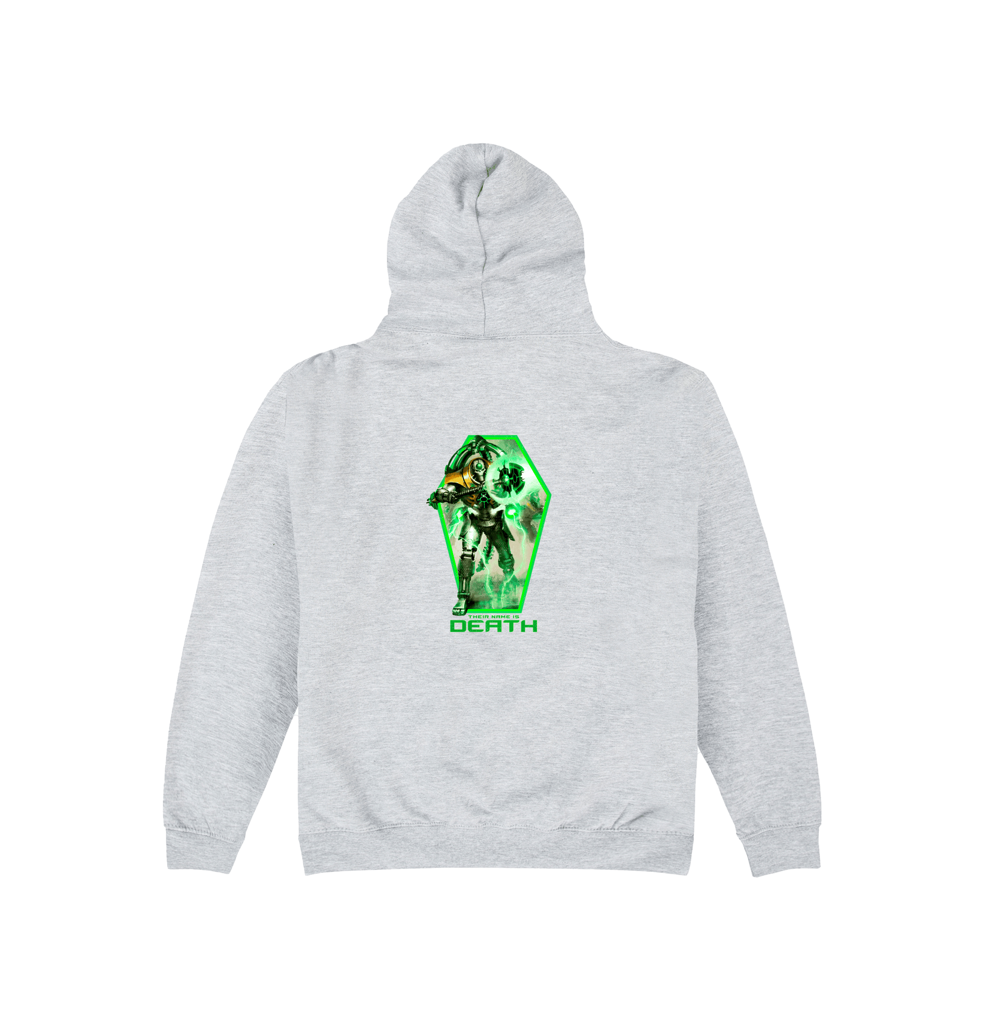 Official Necrons Triarch Praetorians hoodie available in Black, Olive and Heather Grey on sizes S-5XL. . 80% ringspun cotton, 20% polyester. 280gsm. Wash On Low Temperature. Do not bleach. Do not dry clean. Iron inside out, on medium heat. Do not tumble dry.